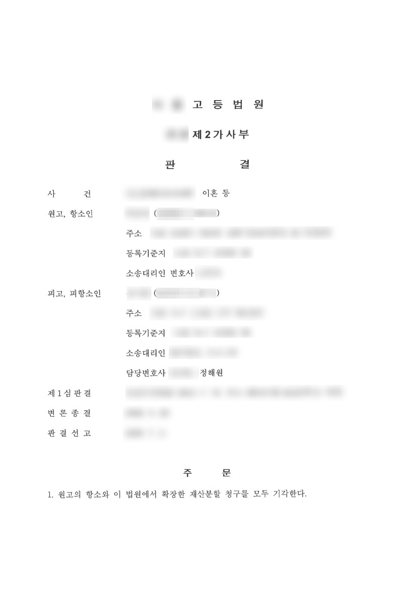 의뢰인이 회사를 어떻게 일궈왔는지 잘 알기에 남편의 이혼, 재산분할, 위자료 청구에 최선을 다해 방어하였습니다.